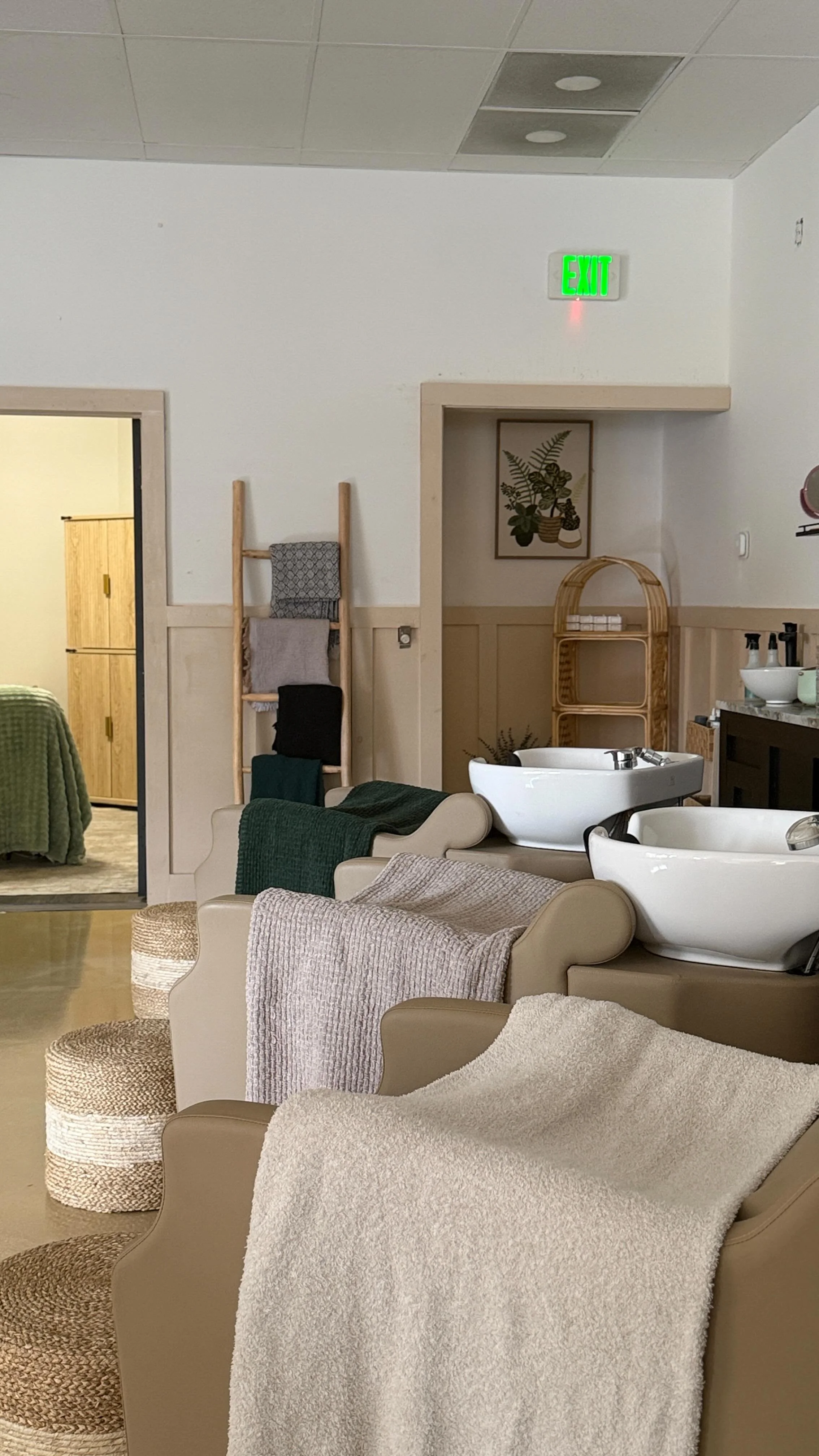 We take pride in the intention woven into every detail: a freshly brewed latte or glass of wine at your appointment, added luxuries like hand massages and hot towels with our signature services, and a curated selection of professional products chosen for their quality and brand integrity. We specialize in modern, low-maintenance color and cuts, specialty blonding, indulgent treatments and tailored self-care experiences that nurture both body and soul.